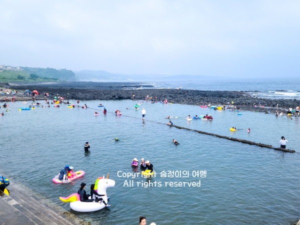 햇살은 쨍쨍하고 바람은 뜨겁던 오후, 8월 제주도 가볼만한곳 10곳 논짓물 담수풀장에 도착하자마자 공기 온도가 달라집니다. 바다를 등지고 있지만 시야에는 늘 푸른 바다가 깔려 있고, 용천수 덕분에 물속은 한여름에도 서늘했죠. 가족 단위 여행객부터 조용히 발만 담그는 여행자까지 각자의 속도로 풍경을 즐길 수 있는 8월 제주도 2박 3일 가족여행 코스로바위 위에 앉아 잠시 쉬는 사이에도 물빛은 변함없이 맑았고, 8월의 제주에서 잠시 더위를 피하고 싶다면, 이만한 자연 수영장이 또 있을까 싶었어요.