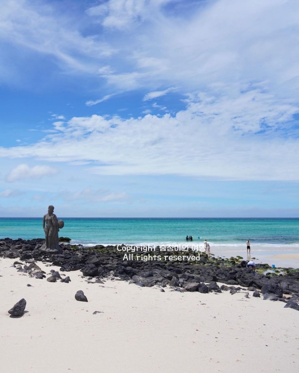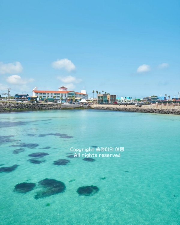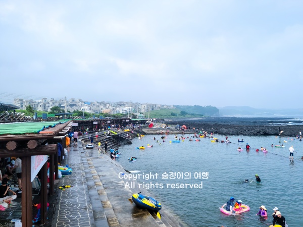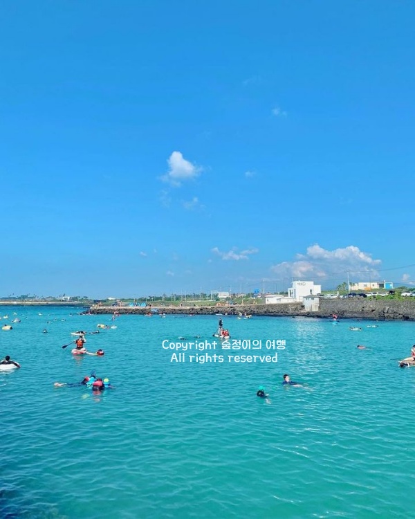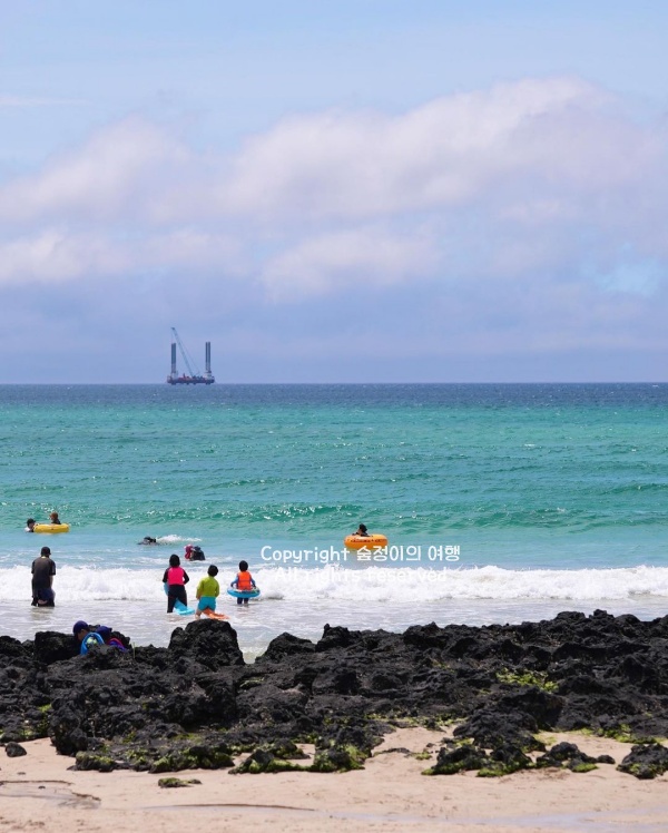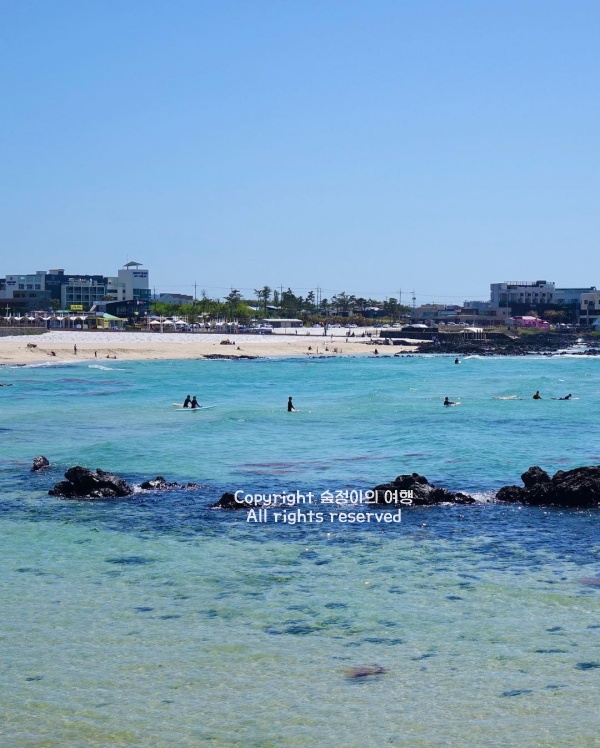 물빛이 맑고 투명해서 하늘을 그대로 옮겨 담은 듯했어요. 바다와 바로 맞닿은 용천수 노천탕에는 발만 담그는 사람도, 다이빙하듯 뛰어드는 사람도 있었고 파라솔 아래 자리를 잡고 나니, 여름의 햇살도 나름 견딜 만하다는 생각이 들더라고요. 모래는 부드럽고, 야자수 그늘은 그림 같고, 가족 단위 방문객들도 많아서 여름 느낌 제대로 났습니다. 아이들은 얕은 바다에서 튜브를 타고 한참을 웃었고, 어른들은 그늘 아래서 바다 멍을 하며 시간을 흘려보낼 수 있는 8월 제주도 가볼만한곳 10곳입니다.