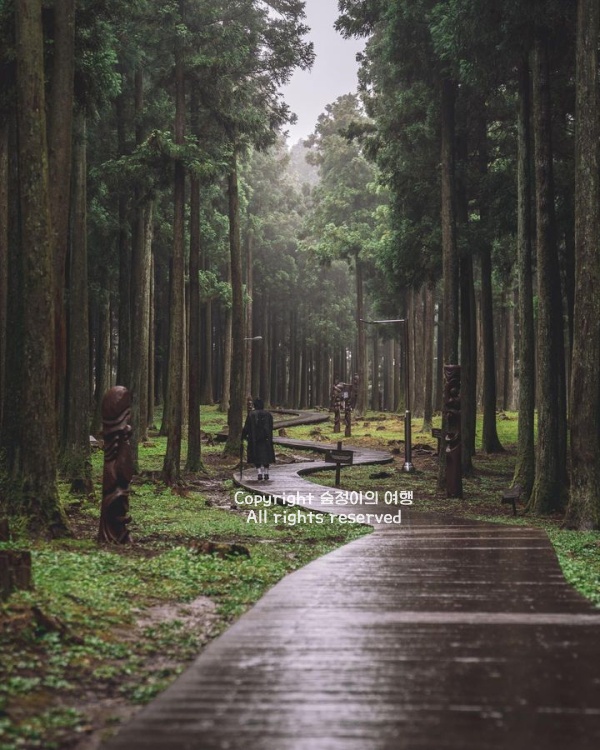 산책로는 넓고 평탄해서 누구든 쉽게 걸을 수 있고, 중간중간 쉼터도 많아 쉬어가기 좋았던 8월 제주도 여행 가볼만한곳입니다. 비가 와도 길은 미끄럽지 않아서 여름 장마철 산책지로도 잘 어울립니다. 절물에서는 특별한 목적 없이 그냥 걷는 것만으로도 충분했어요. 나무 아래 벤치에 앉아 숨을 들이쉬면, 향이 온몸으로 번지고 공기와 초록의 냄새는, 8월 제주도 여행 가볼만한곳 10곳 제주에서 가장 조용한 위로였어요.